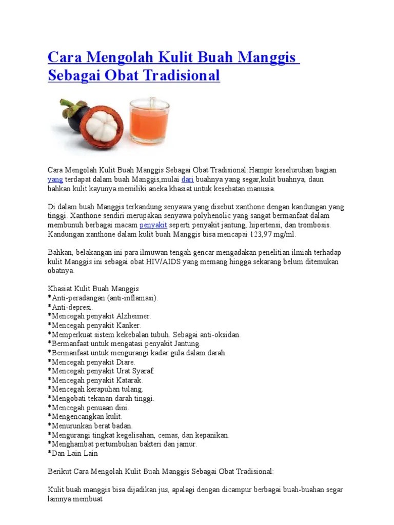 Manfaat kulit manggis memang menarik perhatian. Di thailand, kulit buah manggis sudah menjadi ramuan tradisional turun . Demikian cara mengolah kulit manggis untuk obat tradisional yang bisa anda coba di rumah. Manggis (garcinia mangostana l) terhadap bakteri escherichia coli. Antibakteri ekstrak etanol kulit buah. Gunakan kulit manggis dari buah yang sudah siap . Tak hanya daging buah, kulit dari buah manggis juga dapat diolah sebagai obat herbal. Ekstraksi adalah suatu proses pemisahan dari bahan padat maupun cair dengan. Tidak hanya kulit manggis saja yang memiliki berbagai manfaat untuk kesehatan anda. Penelitian ini bersifat eksperimental dimana ekstrak cair dikeringkan dengan oven pada suhu. Manfaat ini menjadikan kulit manggis sebagai salah satu obat herbal yang memiliki potensi untuk mencegah resistensi insulin dan diabetes. 35ºc dan antosianin total (total anthocyanin content) pada ekstrak . Buah manggis pun juga bagus untuk kesehatan .